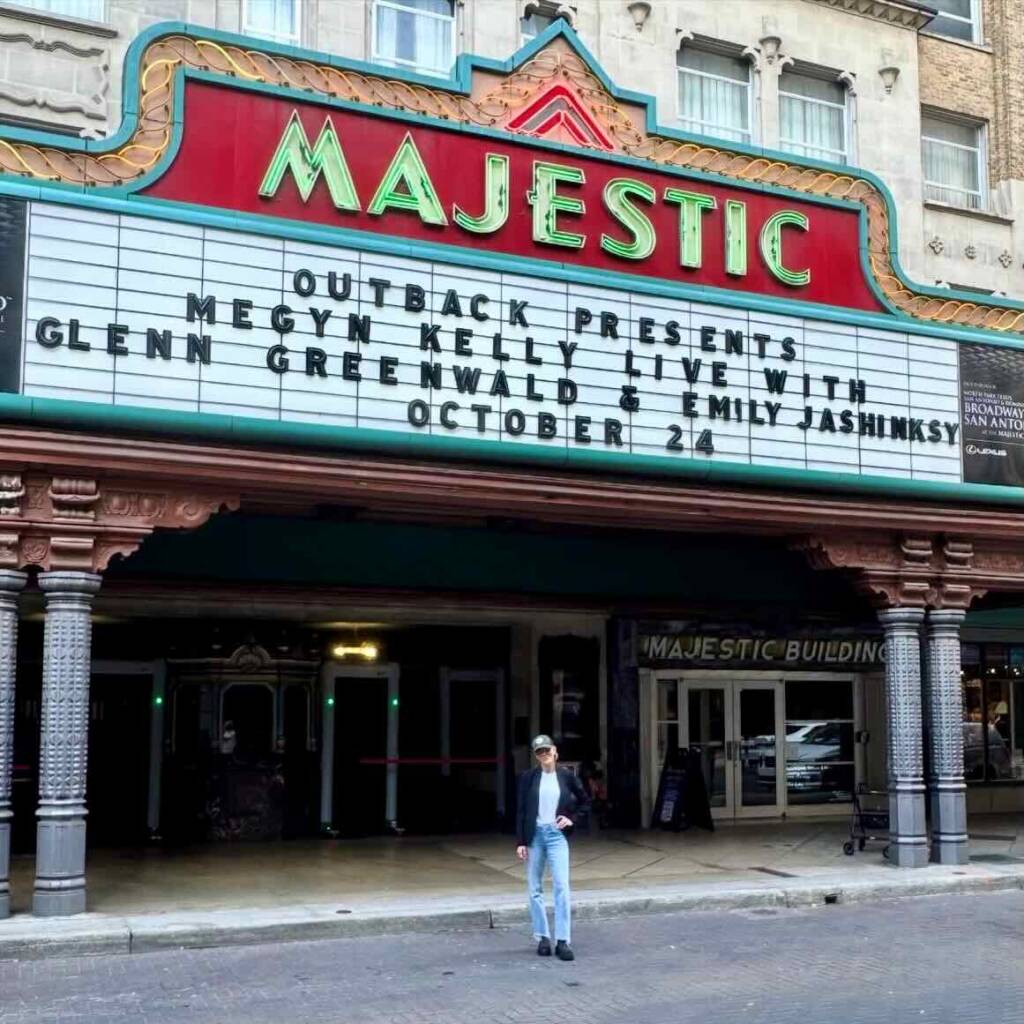 While Megyn was out and about exploring San Antonio, she posed outside her home for the night – the beautiful Majestic Theatre – to see her name in lights.