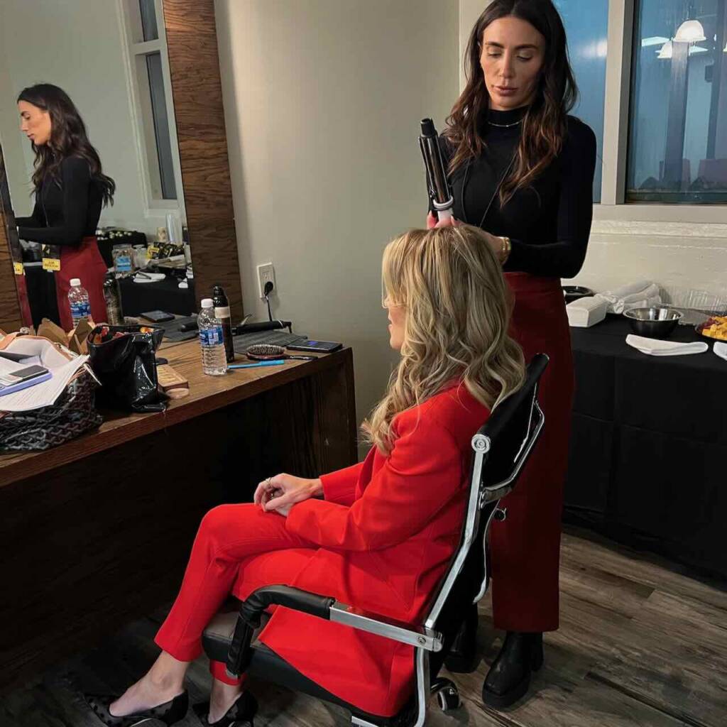 Astronaut Sara put the finishing touches on Megyn’s ‘do just before she took the stage at the Westchester County Center.