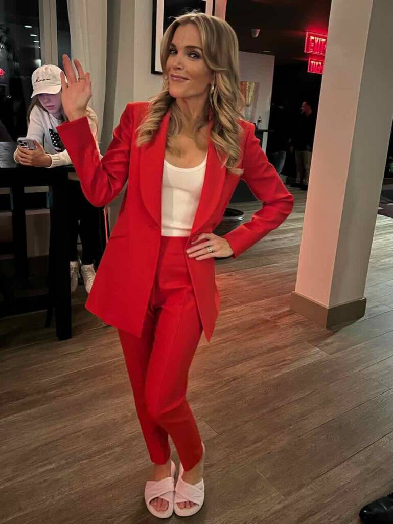 Megyn was ready to have some fun at the after party, but not before making the very important wardrobe change of swapping her heels for a pair of comfy slippers.