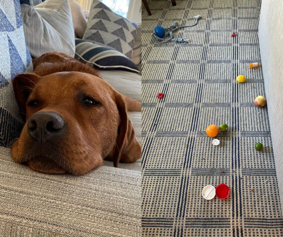 It was around this time last year that Strud made it his mission to knock a bowl of lemons and limes off the kitchen counter. Once he accomplished his goal – and broke the bowl in the process – he was unimpressed with what he found. He left the citrus unscathed and wandered away to find a toy: