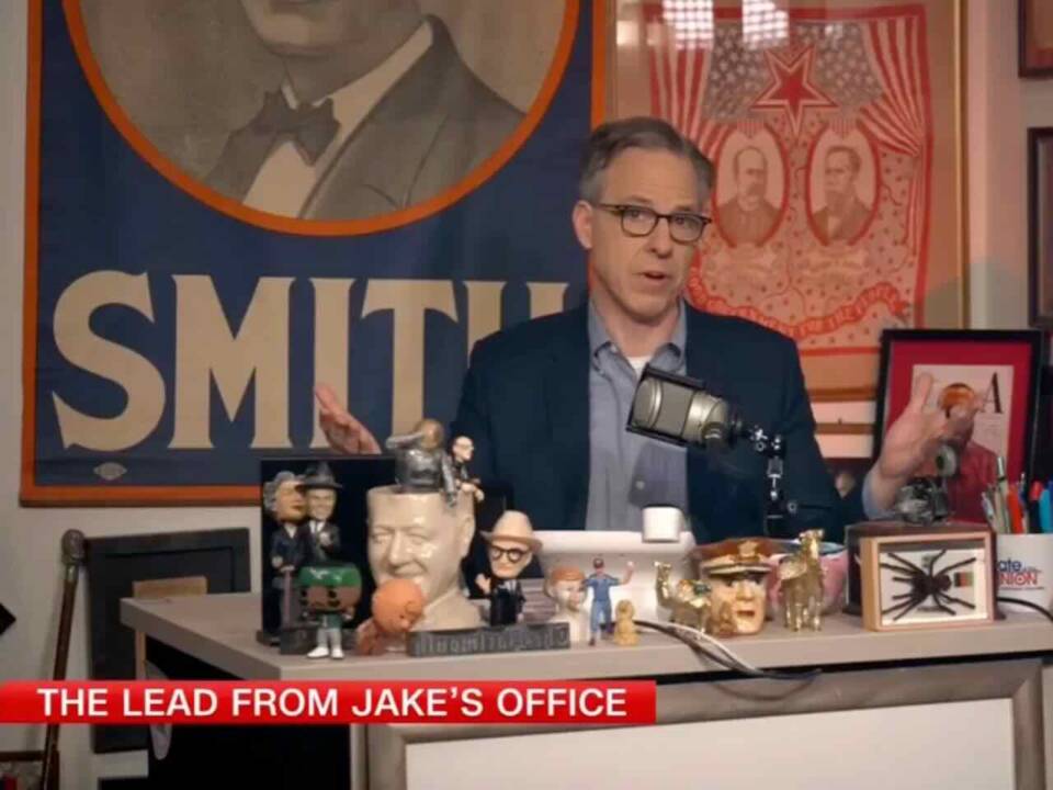 On Friday, Tapper set up shop in his office, which is papered in campaign posters and other knick-knacks, in an effort “bring you into the space where me and my team do our actual journalism and plan the show every day.” His guests for the show sat on a small couch to his right, further revealing the crampedness of the space.