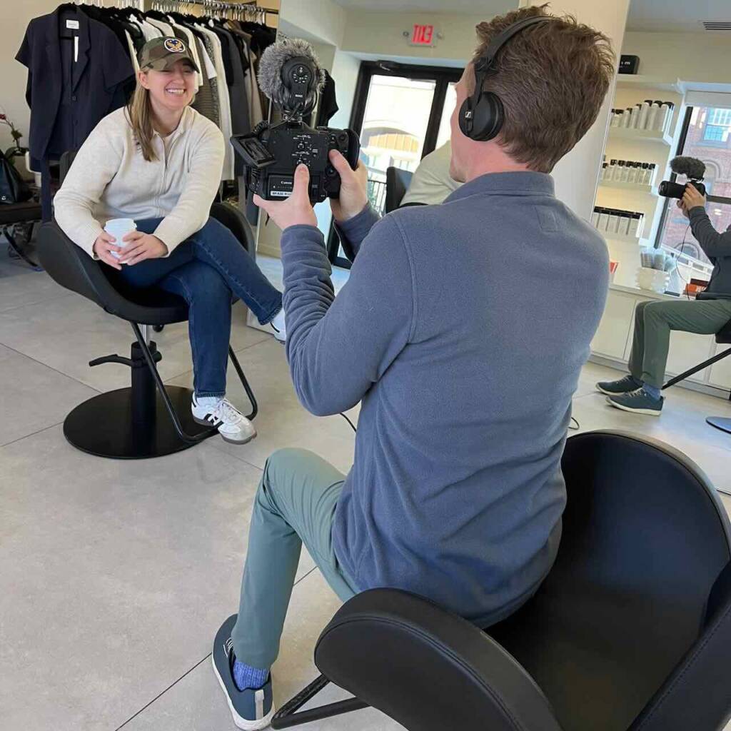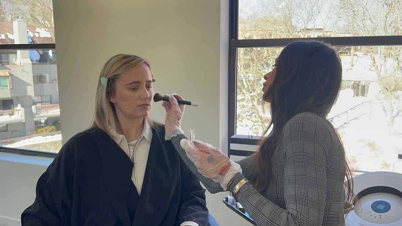 Sara (right) walked Emily through a simple makeup routine that works well on camera and off.