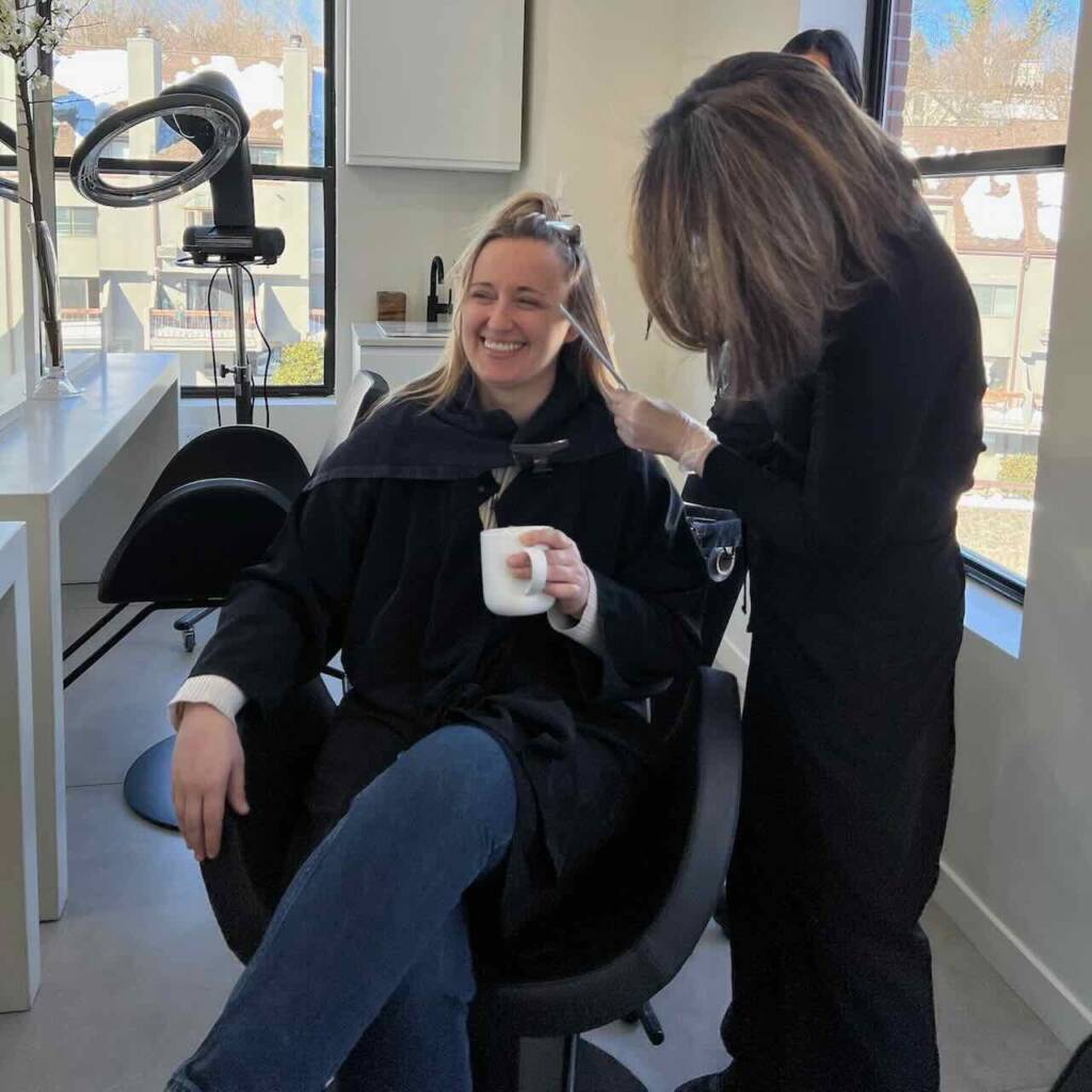 One of Sara’s associates brightened up Emily’s already beautiful blonde ‘do with a few well-placed highlights.