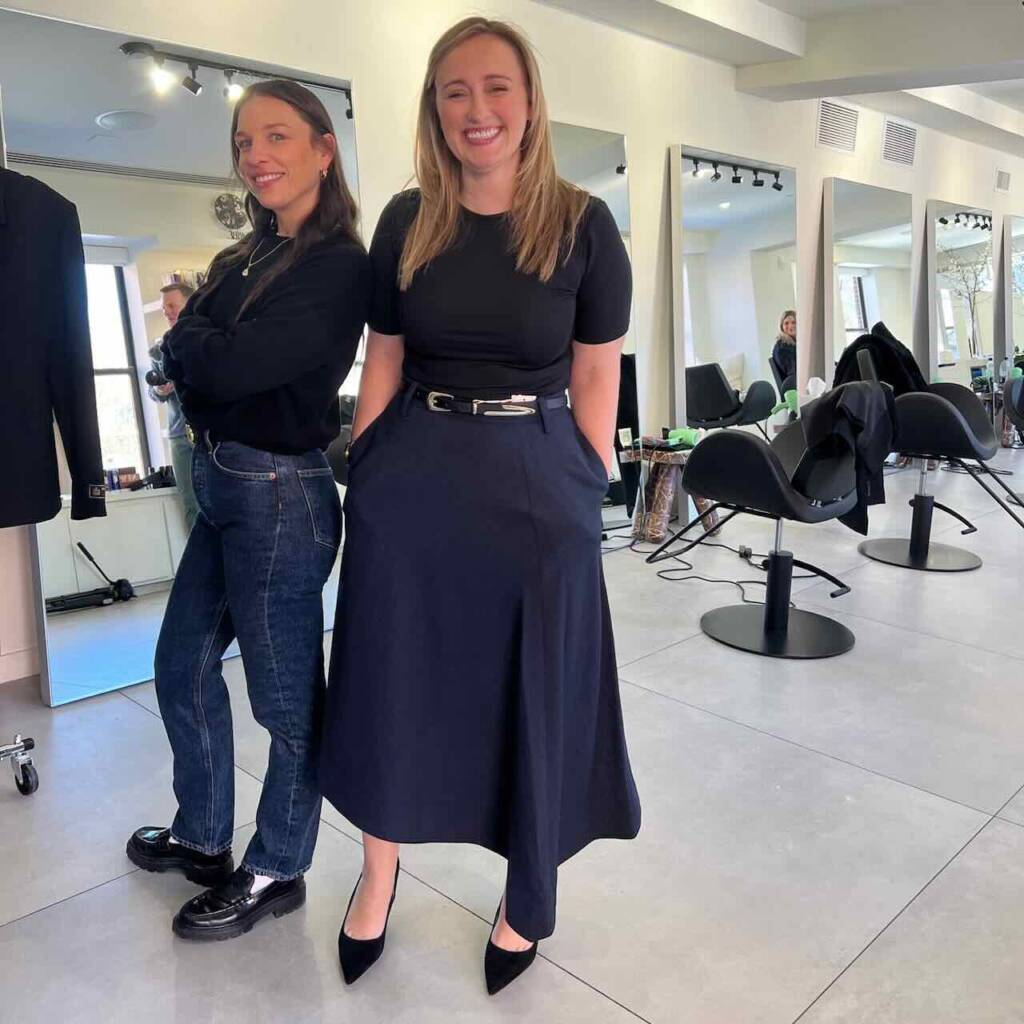 Next up? Styling. Emily worked with Megyn’s stylist Molly (left) to try on some outfits inspired by Jennifer Aniston’s character in The Morning Show.