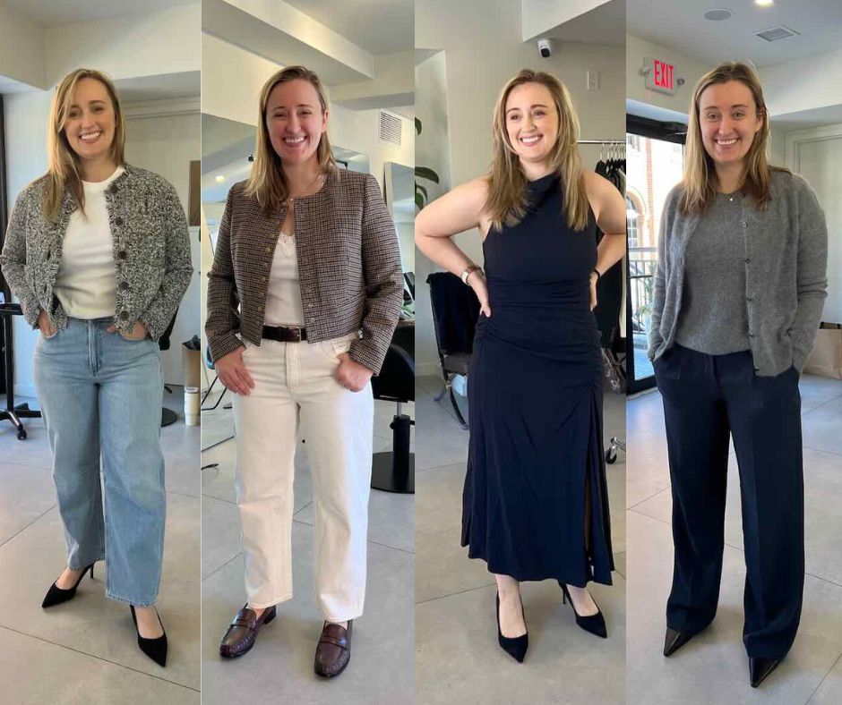 Emily’s love of denim knows no bounds, so Molly showed her how to style the Americana fabric in new ways… and added in a denim-colored dress for good measure.