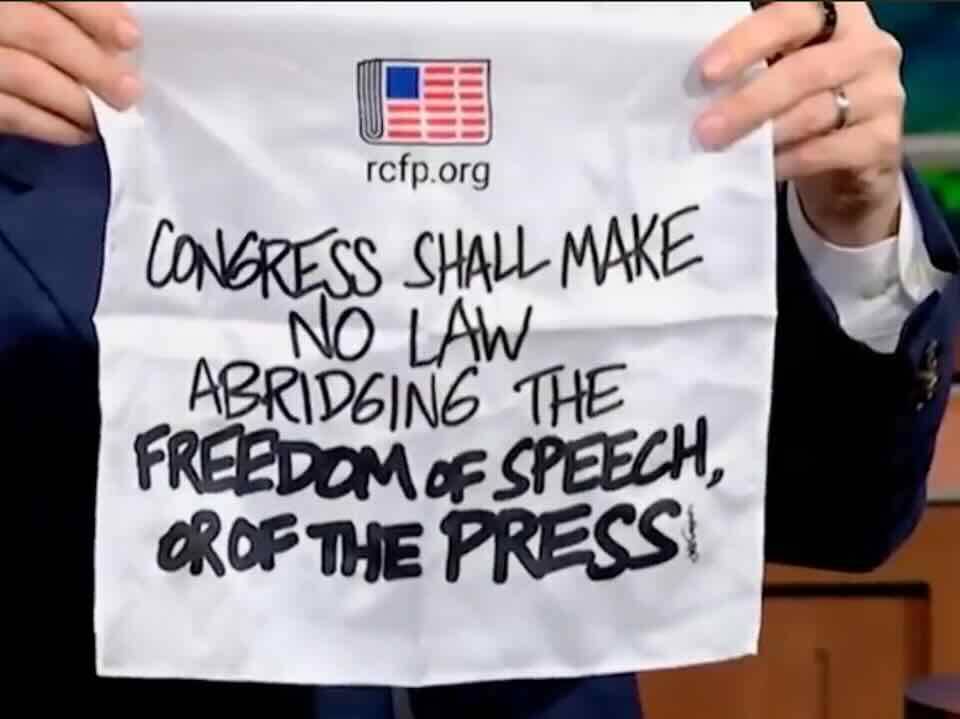 In addition to encouraging those gathered to “speak forcefully,” the letter noted that some media members attending the swanky dinner “plan to wear pocket handkerchiefs or lapel pins with the words of the First Amendment” as another form of protest.
