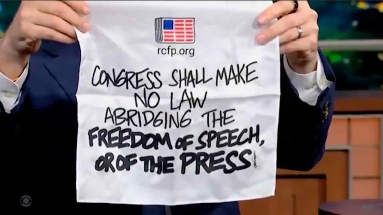 While Cooke doesn’t take issue with defending the First Amendment, he does have a problem with the left and corporate media’s selective outrage. “There is nothing particularly offensive about that pocket square. The First Amendment is crucially important, and sometimes Donald Trump isn’t good on free speech,” he explained. “It’s just that that moment there only seems to happen when a Republican is president. That laughter/clapping from the audience on Stephen Colbert’s show… they didn’t do that when, for example, Twitter and Facebook shut down The New York Post story and the Hunter Biden laptop. They didn’t do that when abortion-covering journalists were being targeted in California. It’s just so one-sided.”